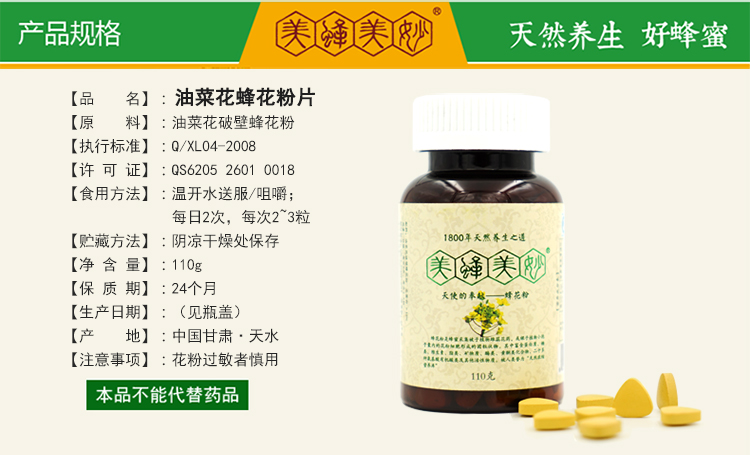 美蜂美妙破壁油菜花蜂花粉片
