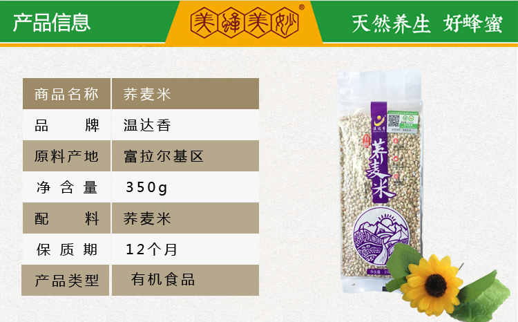 温达香有机荞麦米350g